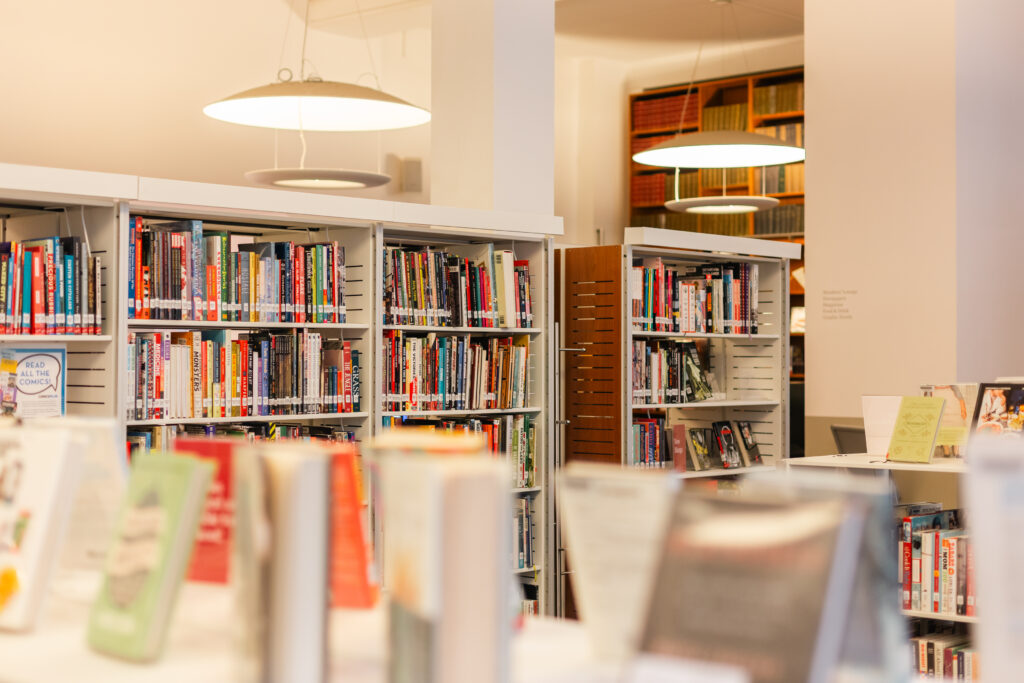 The material in the Library’s collection of over 100,000 items is composed primarily of works by American and other English-language authors, and features significant holdings in American history and civilization, American literature and literary criticism, American artists, and general aspects of American culture and society. The collection is otherwise described as encyclopedic, spanning many genres, and includes numerous works in translation. Several hundred fiction and non-fiction eBooks and eAudiobooks are available on the OverDrive platform and Libby app, and new releases are added regularly.